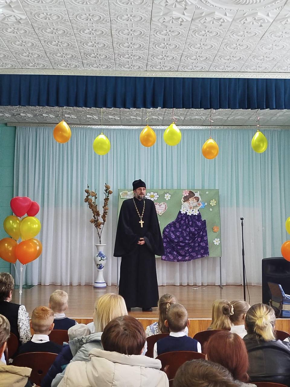 На мероприятии присутствовал настоятель храма Святой Живоначальной Троицы, протоиерей Сергий Быр, который стал почетным гостем концерта. Его участие добавило особый духовный смысл празднику. Отец Сергий обратился к собравшимся с теплыми словами поздравления, подчеркнув важность роли матери в жизни каждого человека и значимость Покрова Пресвятой Богородицы как символа защиты и заботы.